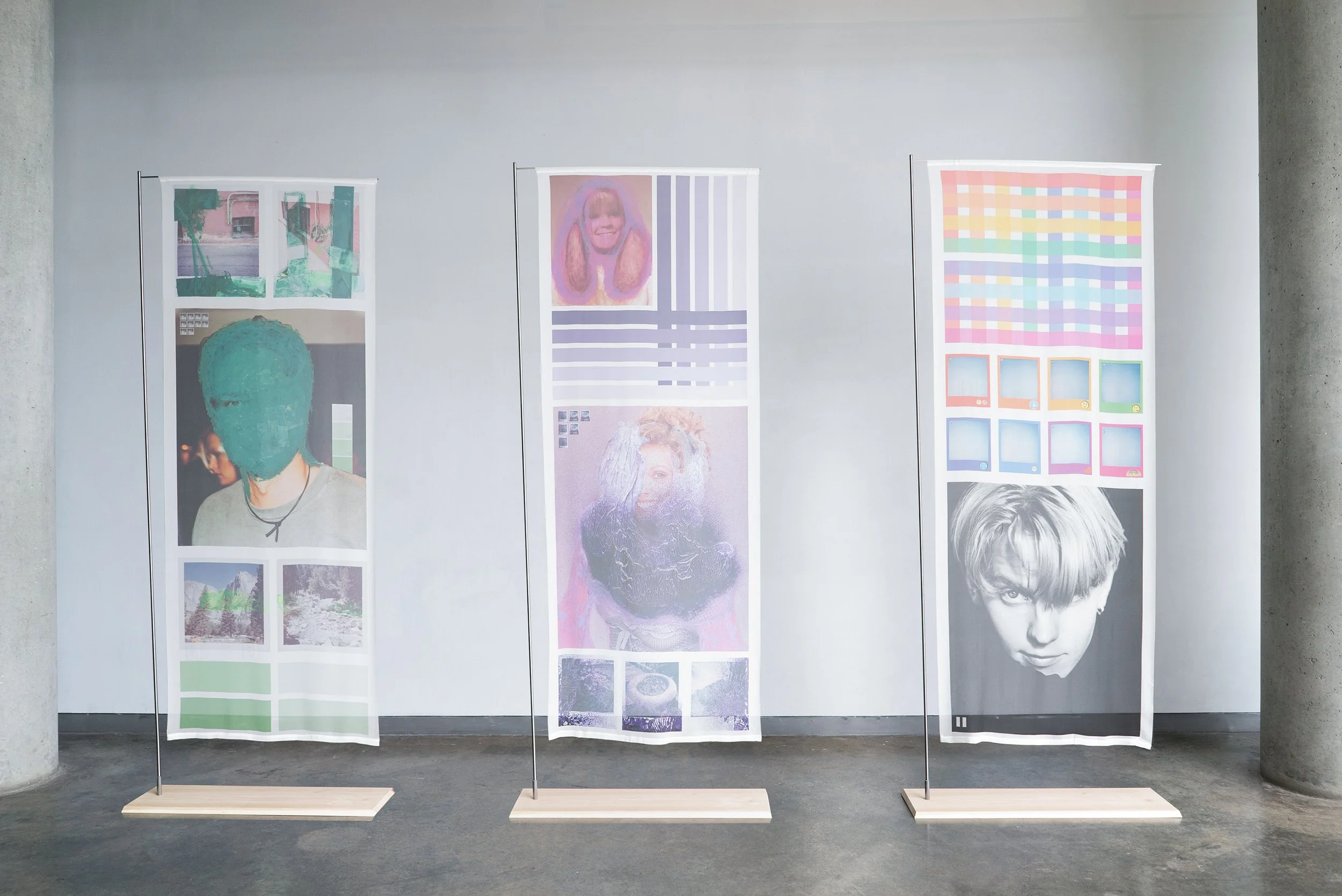 Mixed Media Collage Printed on Silk Chiffon, Metal, Wood